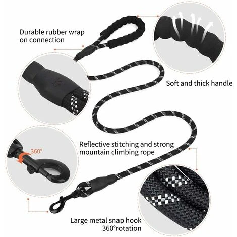 de note. [High Quality Closing Hooks]- Le grand mousqueton métallique est fabriqué en matériau antirouille et anticorrosion, avec un clip pivotant pour éviter la torsion. [Poignée rembourrée confortable]- Nous avons utilisé une poignée rembourrée EVA douce et durable, qui protège vos chiens et votre main de la friction de la corde, vous fait profiter du bon moment de la promenade avec vos chiens. [Suit pour divers types de chiens]- La longueur de 1,5M peut satisfaire votre promenade quotidienne, notre laisse convient à divers types de chiens tels que le Labrador, le Golden Retriever, le Cocker Spaniel, le Pitbull, le Berger allemand, le Husky