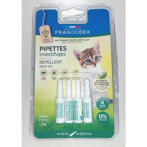 - 4 Pipettes de 06 ml Insectifuges. Pour Chatons moins de 2 kg