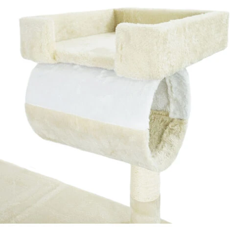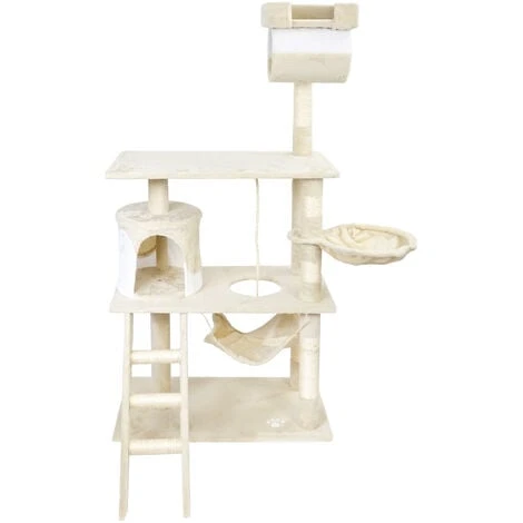 Nous vous proposons un arbre à chat de couleur beige-blanc pour égayer la vie de votre petit compagnon. Il s’agit d’un arbre à chat d’une hauteur de 140 cm qui offre au minou toutes sortes de possibilités : plusieurs endroits pour dormir, plusieurs retraites pour se détendre, différentes activités ludiques et en même temps l’occasion parfaite d’aiguiser ses griffes. L’arbre est donc parfait pour les foyers comptant plusieurs chats.