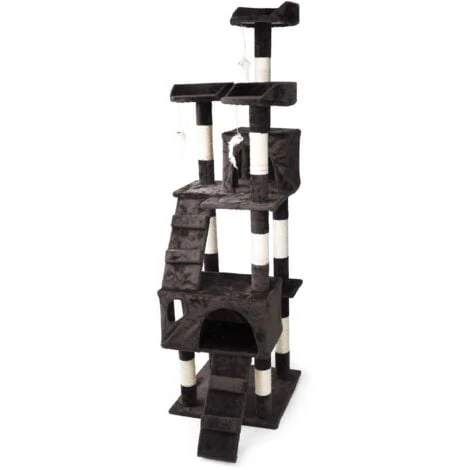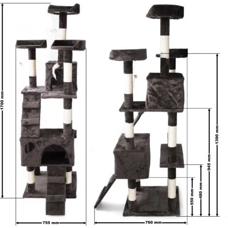 Nous vous proposons un arbre en gris, de 170 cm de hauteur pour égayer le quotidien de votre minou, qui, quand il ne dort pas, ne pense qu’à s’amuser. L‘arbre offre un endroit pour se retirer et dormir, pour se reposer, pour profiter des différentes activités de jeu et en même temps de l‘espace pour y aiguiser ses griffes. Tout à fait idéal si vous avez plusieurs chats.