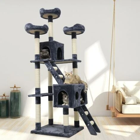 Base épaissie de grande taille – 180 cm (hauteur) de grande taille,un cadre d’escalade luxe pour chat intégrant divertissement, activité et loisirs.La base est épaissie et la stabilité est améliorée.Il peut accueillir quatre ou cinq chats maximum en même temps