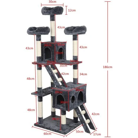 Les tapis cotons doux et confortables sont fixé sur trois plates-formes et le bord surélevé permet au chat de se sentir enveloppé et en sécurité.Marqué sur les accessoires, l’installation est claire et simple