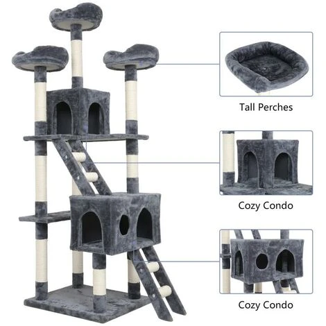 Répondez à la demande du hauteur–Conçu de quatre niveaux de hauteurs différentes,avec un escalier à deux étages ,trois plateformes et plusieurs plates-formes de saut.Votre chat peut expérimenter le plaisir d’explorer et de se cacher sous plusieurs angles