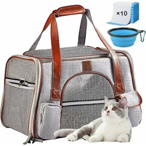 polyuréthane confortable et une boucle de sécurité pour voiture. Notre caisse de transport chat chein est idéal pour les voyages, les visites chez le vétérinaire, les déménagements ou les voyages, par exemple dans les bus ou les trains. - Votre sac transport chat comprend également des gamelles supplémentaires pour les déplacements, ainsi que 10 tapis absorbants au cas où tout ce qui se passe à c?té. Vous recevrez également un coussin amovible qui peut être facilement lavé à la main