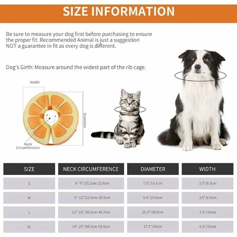 【Taille adaptée】 Nous vous recommandons de mesurer la circonférence du cou de votre chien à fourrure avant d’acheter et d’obtenir la taille la plus appropriée selon le tableau des tailles recommandé. Si lecollier de protection gonflable est un peu trop grand pour votre chien et a tendance à tomber, essayez de combiner un collier quotidien avec un collier de récupération pour empêcher le collier de tomber.