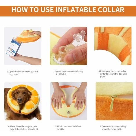 【Confortable et pratique】 La fonction gonflable et la doublure extérieure douce rendront votre chien bien-aimé plus confortable à utiliser. C’est suffisant pour faire de ce beignet protecteur un petit oreiller. Et ce collerette souple chien ne bloquera pas la vue de votre chien. Portant colliersouple gonflable chien , les chats et les chiens peuvent se déplacer librement sans affecter l’alimentation, le sommeil, le jeu et l’entraînement.