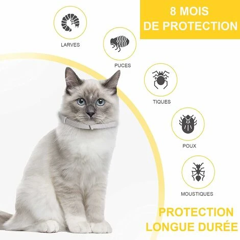 poils et la peau du chat à faible concentration, de sorte que votre animal reste protéger durant 8 mois.