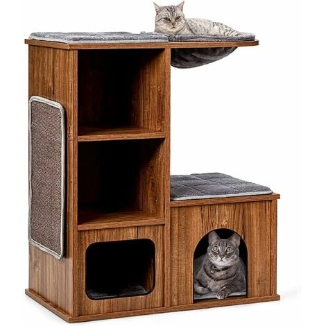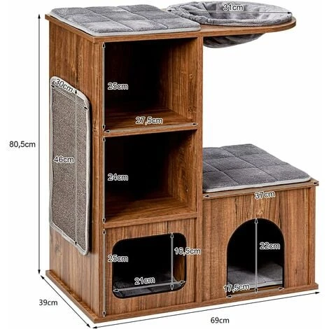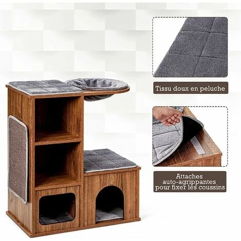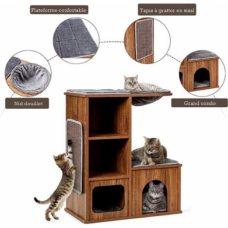 - 【Structure robuste et stable】Fabriquée en panneaux de particules de haute qualité, cette tour pour chats est robuste, sans risque de déformation ou de fissures. La base renforcée offre également un meilleur support avec une capacité de charge importante: les chats peuvent ainsi sauter facilement et en toute sécurité sur ou hors de cet arbre à chat.