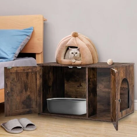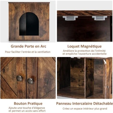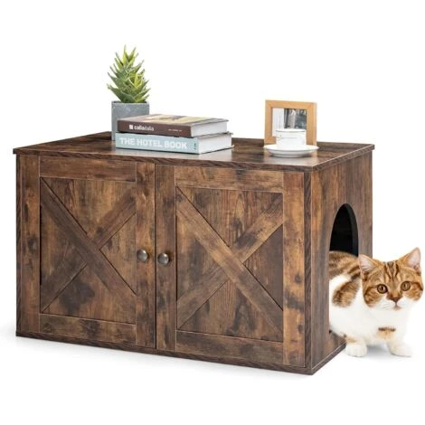 - 【Utilisable dans divers lieux : 】un meuble répondra à vos besoins et à ceux de votre chaton en même temps. De plus, la finition extérieure rustique et les portes de grange uniques confèrent une touche de charme, rehaussant l’aspect décoratif de l’enceinte du bac à litière pour chat. Cette maison pour chat pratique se mariera parfaitement avec tous les styles de décoration de votre maison.