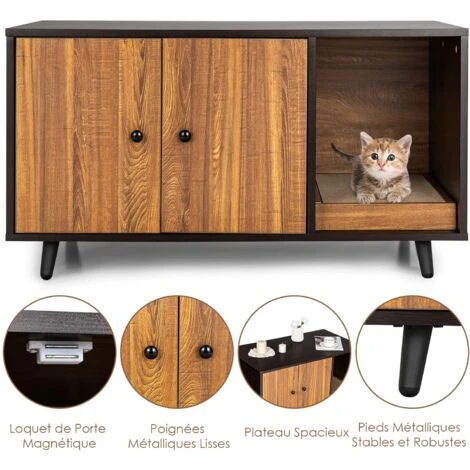 - 【Utilisations multifonctionnelles : 】l’armoire pour chat fonctionnelle avec 2 portes peut cacher un petit espace pour chat et une maison pour chat qui peut être utilisée soit comme petite enceinte, soit comme maison de salon pour chat, soit comme table basse ou armoire latérale. En outre, son aspect élégant peut parfaitement se fondre dans votre décor.