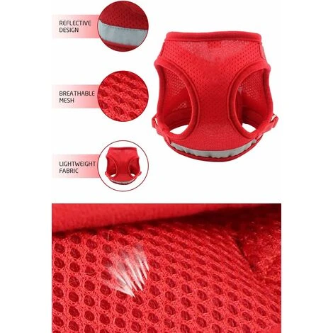 La sangle de poitrine pour animaux de compagnie est conçue avec un tissu en maille de polyester, le tissu est doux, ne tirera pas les poils de l’animal et n’endommagera pas la peau de votre animal.La grille de petits trous délicate et confortable n’est pas étouffante et très respirante.