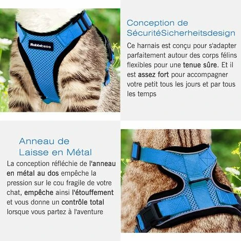 Facile à Mettre: Ce harnais chaton avec boucles à fermeture rapide assure une utilisation facile lors de la pose et du retrait. Il suffit de lui glisser la tête dedans et de cliper les 2 côtés derrière les pattes