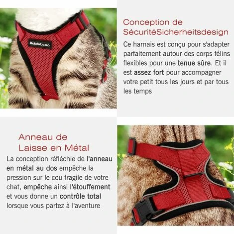 Promenez avec Votre Chat: Il comporte une laisse et un harnais, ce harnais chat est parfait pour les chats et les petits chien. Avec l’attache dessus et la laisse, c’est parfait pour votre chat quand vous le sort pour le promenner dans l’herbe