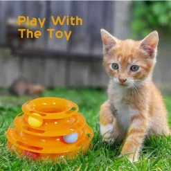 Minetgnon Jouet Chat/Chien Tour De 4 Pistes En Cercle – 3Balles -3 Étages – Orange