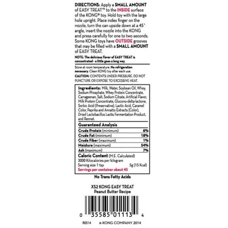 Pourquoi choisir Easy Treat de chez KONG ?Easy Treat de chez KONG est une friandise en pâte qui ravit tous les types de chiens tout en offrant une solution facile sans gâchis pour les parents d’animaux de compagnie.La nouvelle recette au beurre de cacahouètes est irrĂ©sistiblement dĂ©licieuse. Votre chien en redemandera !Tous les produits Easy Treats sont hautement digestibles et ne contiennent aucun acide gras trans.Un embout de conception exclusive permet de contrĂ´ler facilement la quantitĂ© de KONG Easy Treat ajoutĂ©e, et de garnir le jouet de façon pratique et non salissante.Vous voulez que votre KONG garni dure plus longtemps ? Congelez un KONG garni, agrĂ©mentĂ© de KONG Peanut Butter Easy Treat, pour un dĂ©fi qui absorbera longtemps votre chien. Inutile de mettre au frais.
