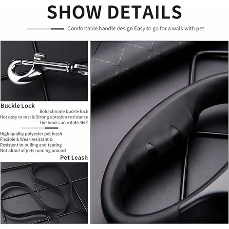 aux animaux une grande liberté sous votre contrôle. [One Button Brake & Pause & Lock] – Vous pouvez simplement appuyer sur le bouton pour ajuster la distance entre vous et vos chiens rapidement à tout moment. Avec le ressort de haute qualité et de longue durée de vie à l’intérieur, le mécanisme