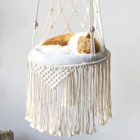 Multi-usage : il s’agit d’un hamac pour chat fait à la main qui peut également être utilisé comme une belle décoration murale, une plateforme de rangement et un hamac pour les enfants.