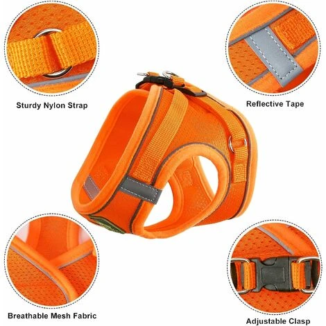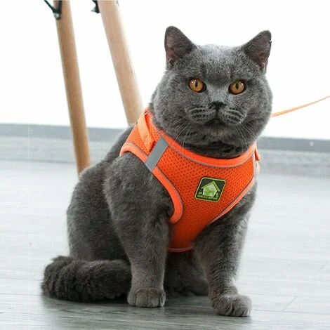 Gilet anti-évasion pour chat avec laisse, harnais pour chat réfléchissant réglable avec laisse, orange comprend une laisse et un harnais Qualité suffisante Notre gilet pour chat est fabriqué en maille polyester de haute qualité, facile à porter, respirant et confortable. Non seulement il est beau en apparence, mais il réduit également la charge de transport des chatons et des chiots.La conception des bords réfléchissants rend les voyages plus sûrs. Large gamme d’applications Nos produits peuvent être portés par les chats et les chiens, ainsi que par d’autres petits animaux de taille assortie, tels que les porcelets, les lapins, les furets, etc. Conception exquise et simple L’ensemble des produits est équipé d’attaches à double anneau en D et de velcro haute résistance pour atteindre l’objectif de ne pas tomber facilement.Le buste peut être ajusté et il est facile à porter. Contenu de l’emballage : 1 x harnais pour chat 1 x laisse en nylon (150 cm)