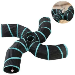 Tunnel Pour Chat,Jouet Pour Chat Tunnel Pour Chat Avec 5 Canaux Pliables Bleu Diamètre 30 Cm FUIENKO