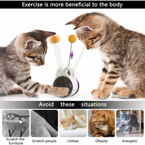 Attire l’attention du chat : les jouets pour chats d’intérieur peuvent se balancer à 180 °, tourner à 360 °, rouler, et jouer dans n’importe quel état. Le système d’auto-équilibrage intégré permet à la boule de changer automatiquement de direction lorsque vous le heurtez avec un mur, une chaise, une porte, etc. Pas besoin d’aide supplémentaire.