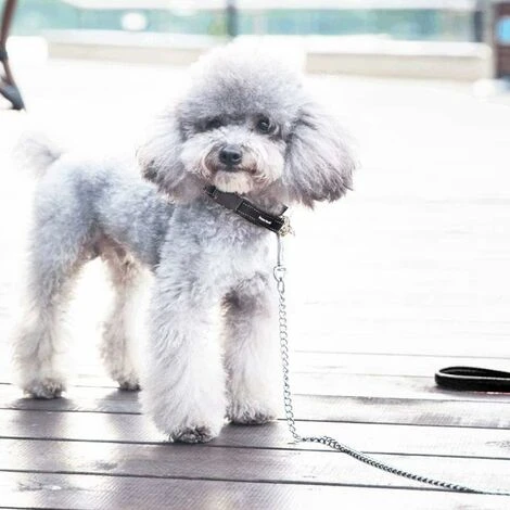 CONSEIL D’ACHAT: Laisse chaîne en métal (acier chromé) est évidemment plus lourde que la laisse en nylon, veuillez faire attention au poids de cette laisse avant d’achater, merci.