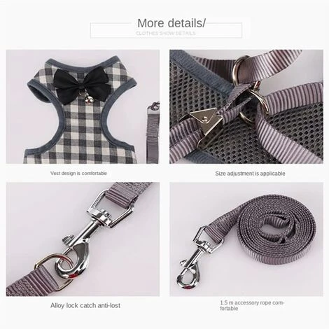 d’adapter rapidement le gilet à la petite taille de votre chat. [Taille de Harnais Chat] L’emballage comprend : 1 sac Harnais chat, 1 laisse pour chat de 150 cm. Convient aux chats ayant un tour de poitrine de 26-40 cm/10.2-15.7inch et un tour de cou de 20-30 cm/8-11.8inch. [Facile à nettoyer] Lavable en machine à l’eau froide, séchage par culbutage, matériau souple, facile à nettoyer. Propre et hygiénique, réduit les bactéries, bon pour leur santé et rend votre chat plus confortable à porter.