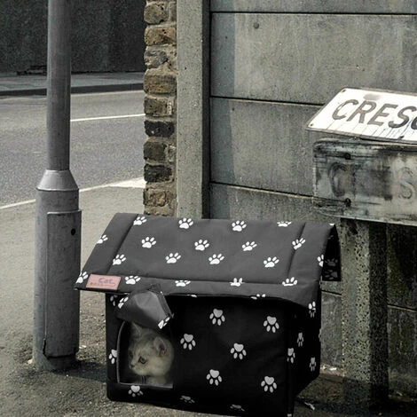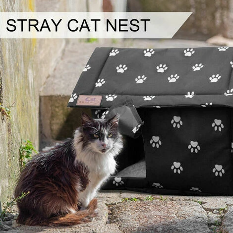 Cette maison de chat est faite de tissu Oxford imperméable de haute qualité, qui peut empêcher le vent et l’humidité. Il a un rideau de porte très réfléchi et une conception d’ouverture latérale. Cette maison pour chats peut mieux empêcher le vent et la pluie d’entrer dans la maison pour chats et fournir une compagnie chaleureuse aux chats errants.