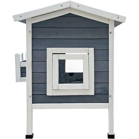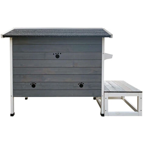 Maisonnette de chat en bois 58×73,6×104,9 cm Lodge avec terrasse