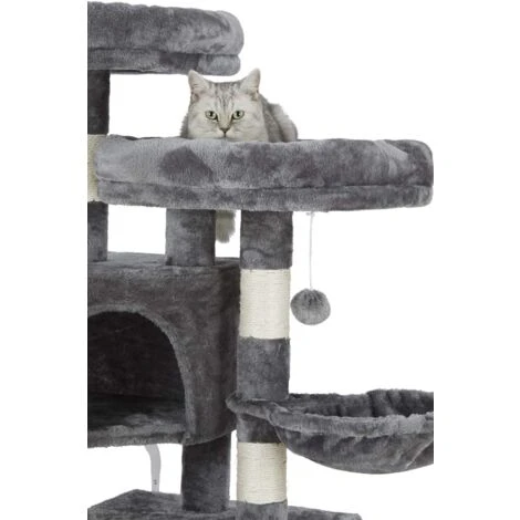 Grand arbre à chat : idéal pour chaque pièce, 6 niveaux pour sauter de plateforme en plateforme, 2 grandes grottes pour chats et 2 grands recoins pour se prélasser. L’article est idéal pour le chat qui saute de haut en bas et offre au chat beaucoup d’espace