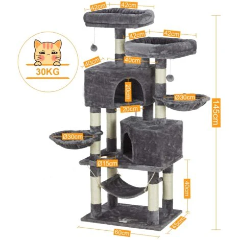 145 cm de pur luxe Pour les chats : Il s’intègre harmonieusement dans chaque recoin de votre appartement.Griffoir robuste qui offre à vos chats un large éventail de possibilités pour grimper, jouer et dormir. Assez approprié pour que 3 à 6 chats jouent,