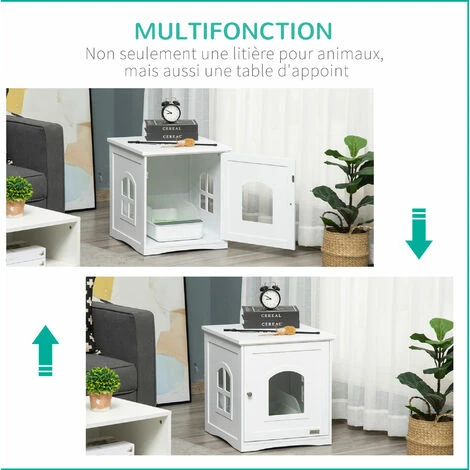 – Meuble 2 en 1 : maison de toilette pouvant également faire office de table d’appoint, bout de canapé, guéridon