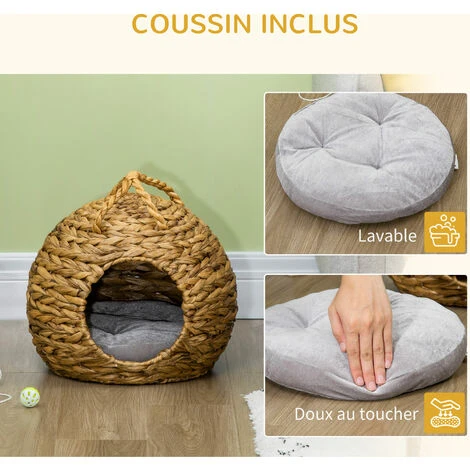 – Fabriqué en jacinthe d’eau assurant légèreté et perméabilité à l’air