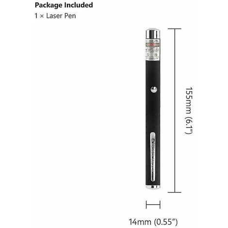 Pointeur laser Point de puissance élevée Pointeur laser puissant. Spécifications : Traitement de surface : anodisé noir alimentation : 2 piles AAA (non incluses) Longueur d’onde : bleu-violet (violet) 405 nm ; vert 532nm; rouge 650nm Portée laser : rouge 500 mètres, vert 500-1000 mètres, bleu-violet (violet) 10-100 mètres temps de démarrage : 0,001 seconde courant de fonctionnement : <350mA