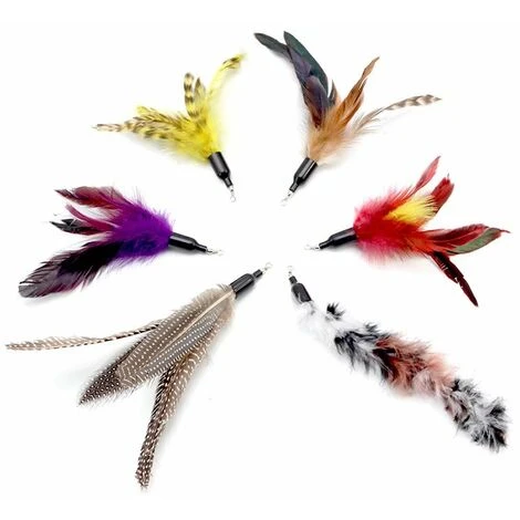 - Matériel: en plume naturelle, non toxique, doux. Les frondes de plumes 6x sont compatibles avec la plupart des cannes à pêche interactives pour chats.