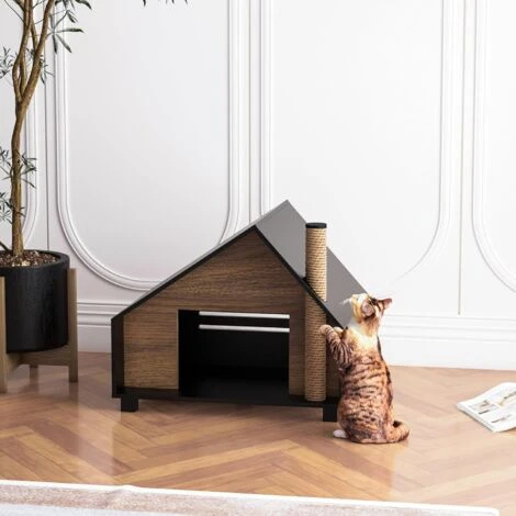Roomfitters Niche Pour Chat En Bois Avec Griffoir, Maison Pour Chiens D’extrieur, Condos Pour Chats D’intrieur, Maison Pour Animaux, Cachette Pour Lapins, Style Cottage, Noyer Noir