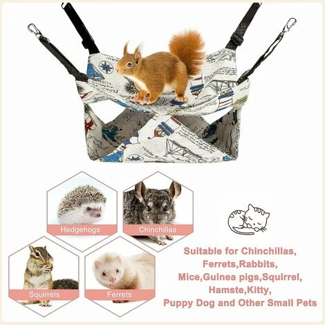 【Emballage inclus】 Chaque emballage contient 1 hamac double couche pour petit animal de compagnie, le hamac convient à toutes sortes de petits animaux : chinchillas, furets, lapins, souris, cobayes et autres petits animaux de compagnie.
