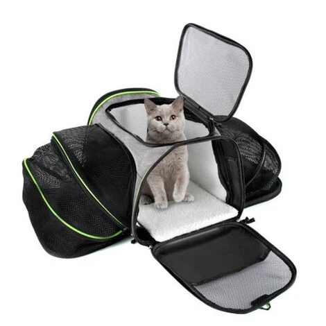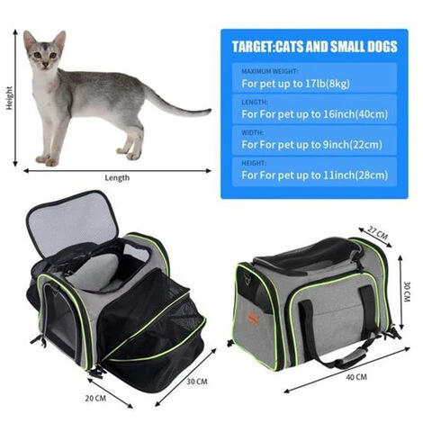 - 1. Porte-chat à expansion unique à 2 voies : après l’expansion, le porte-chat devient beaucoup plus grand, créant un espace spacieux et confortable pour votre animal de compagnie. Une fois plié, le format est compact.