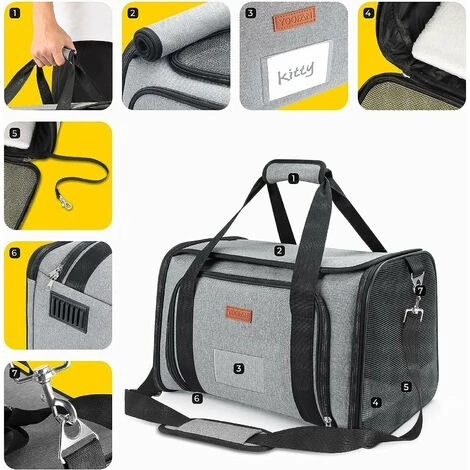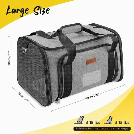 Utile et portable – La dimension du transporteur est de 41x28x28 cm et convient aux animaux jusqu’à 7 kg/15 lb (veuillez vérifier le poids de votre animal). Il y a un tapis en coton et une fenêtre pour carte d’identité pour vous aider à trouver votre sac rapidement.