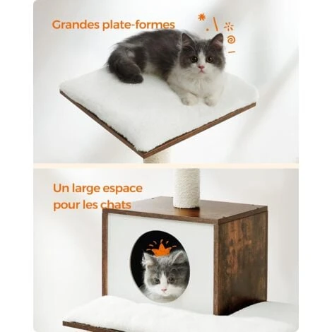 [S’harmonise facilement à votre intérieur] Avec du marron rustique et du blanc chic, cet arbre à chat moderne avec poteaux à griffer va avec la plupart des styles de décoration intérieure tout en y ajoutant une touche d’originalité