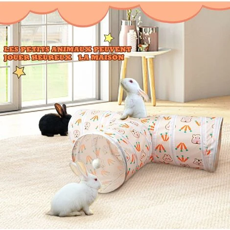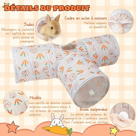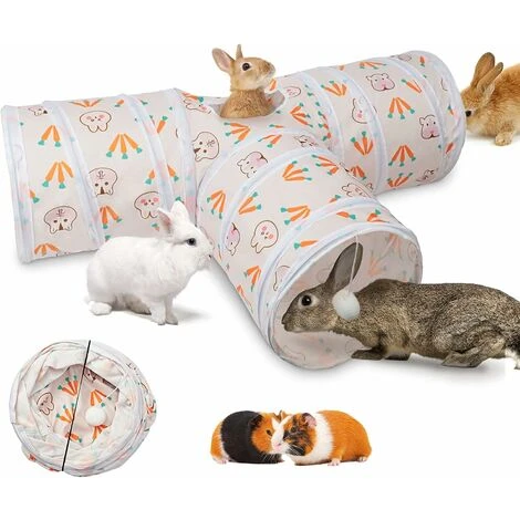 Design spécial: Notre tunnel pour lapin avec 3 tunnels spacieux, un judas et une balle mobile, ce jouet pour lapin donne à votre lapin plus de façons de s’amuser, le motif carotte attirera votre petit animal de compagnie pour jouer, gardant votre lapin diverti pendant de longues heures.