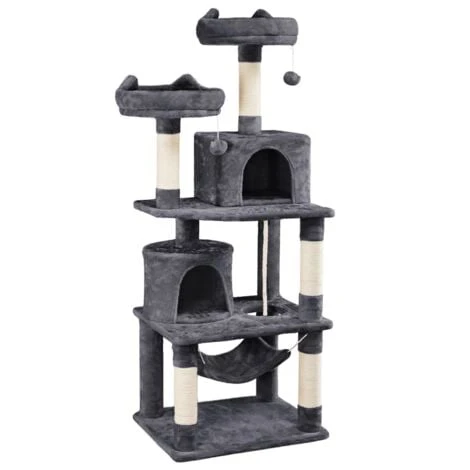 - TOUR D’ACTIVITÉS: Six poteaux-griffoirs en sisal répartis à différentes hauteurs permettent de satisfaire plusieurs chats dans leurs différentes habitudes de grattage et d’éloigner leurs griffes de vos meubles. Deux boules de peluche à grelot fixées à un élastique, une corde de sisal et un grand hamac sont là pour amuser les chats joueurs et débordants d’énergie.