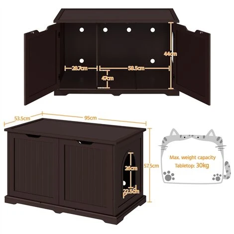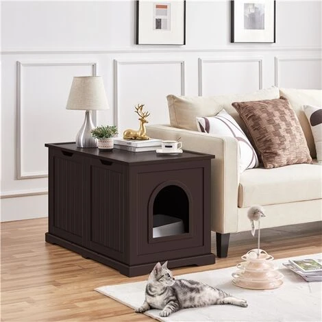 - Meuble polyvalent : Il ne s’agit pas seulement d’un meuble cache litière, mais aussi d’une jolie table d’appoint. Son plateau supérieur sera un présentoir pour vos bibelots. L’espace intérieur peut aussi être utilisé pour stocker des affaires.